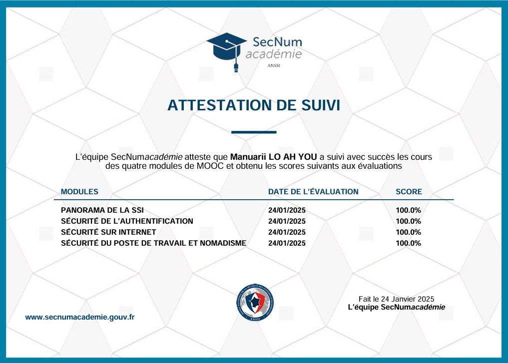 Mon objectif : me spécialiser dans le pentest et la cybersécurité offensive pour identifier les failles avant les attaquants et contribuer à construire des systèmes réellement sécurisés.